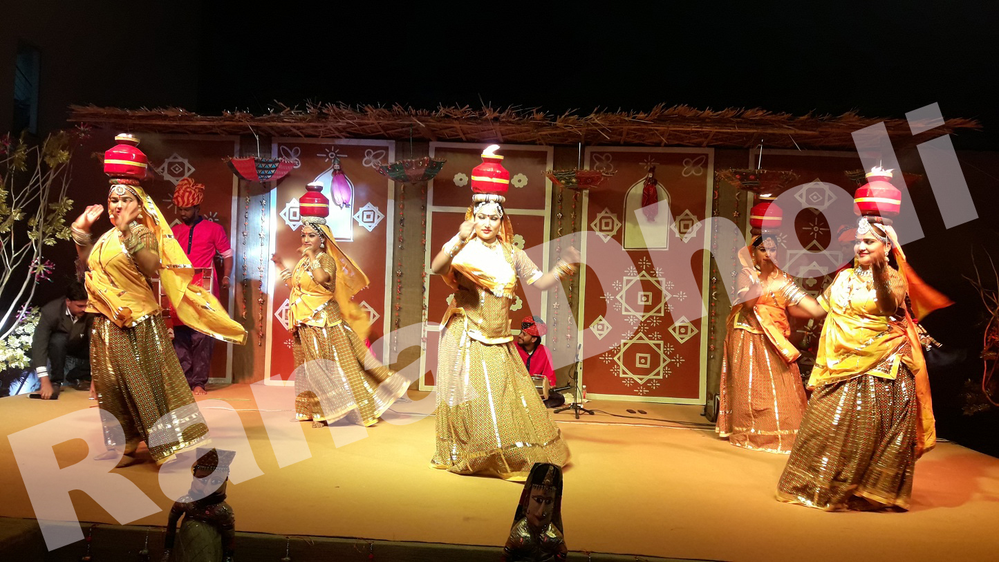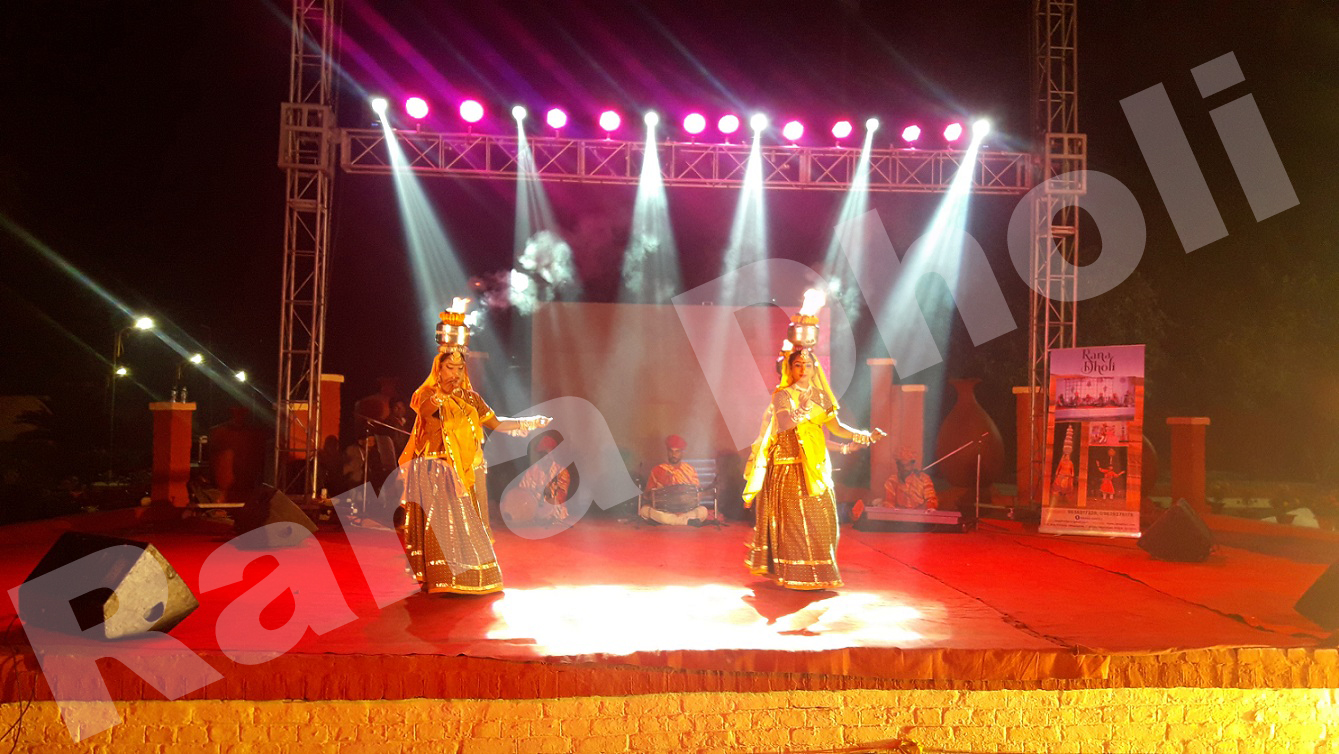 Rajasthani Chari Dance Performance showcasing balancing, thrill, and perfection by women’s keeping brass pot on their head. Since Chari Dance is one of the oldest Rajasthani Traditional Dance Forms, it reflects the traditional custom of Rajasthan performed in weddings. During the toran ceremony, the bride’s mother carries a chari on the head with the lighting Diya or lamp to welcome the groom by performing his “Aarti”. Being one of the auspicious customs, it also makes audiences realize the value of Rajasthani Folk Customs in an entertaining way.