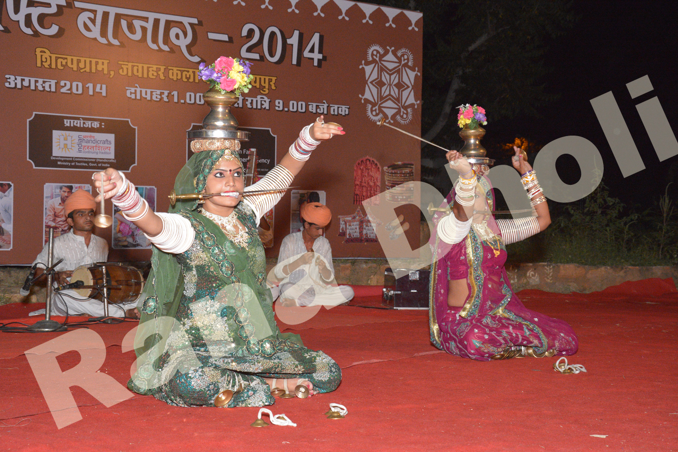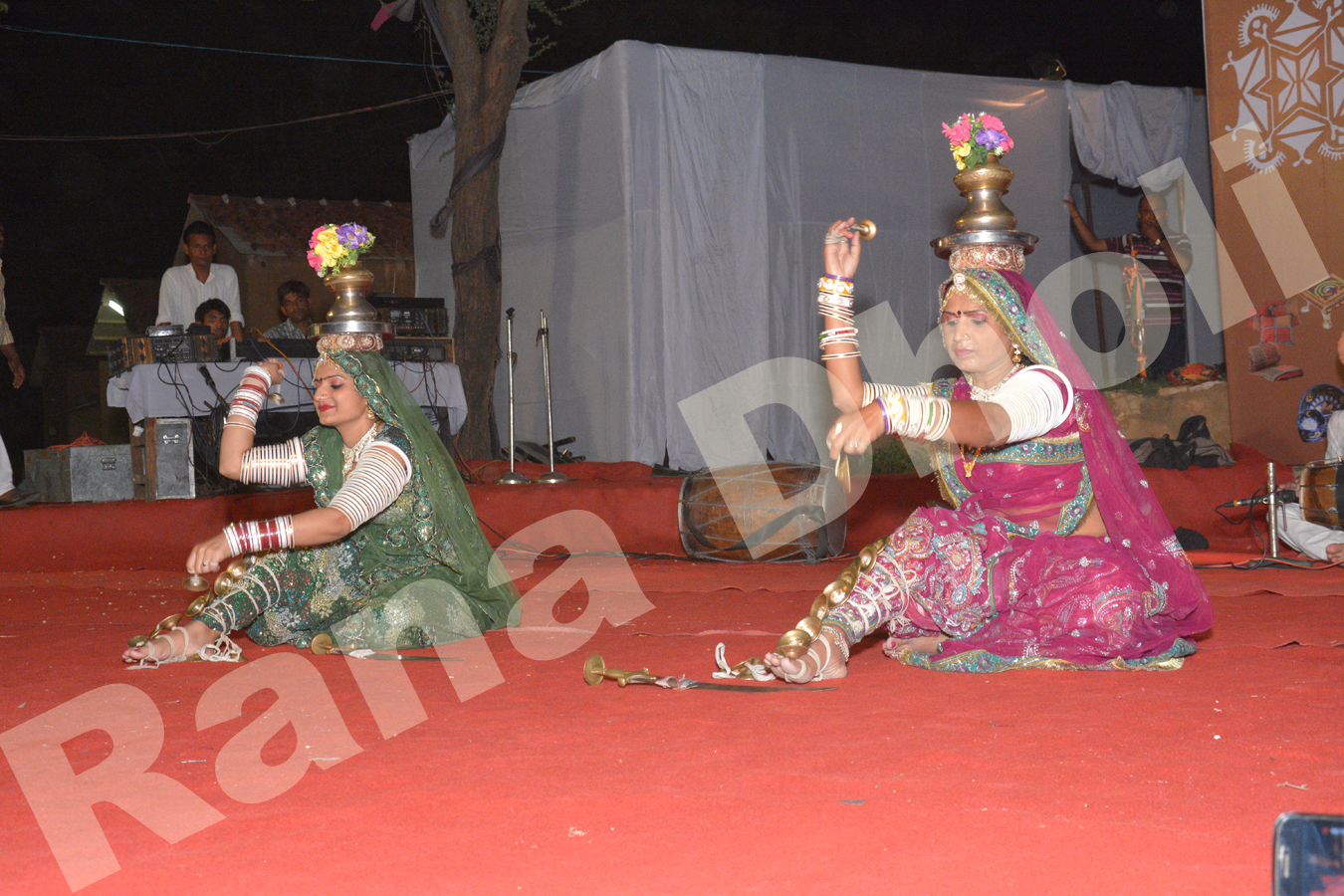 Well-skilled artists perform Terah Taali Dance. Thirteen manjeeras (little brass disc) are tied to various parts of their body, which they strike with the ones they hold in their hand. This creates a rhythm on which the dancers move. The dancers perform various arabesques with their hands and at the same time also balance pots on their hands and hold a sword in their mouth, for making the performance more attractive. The dance begins with the woman, who sits on the floor and her body parts are tied with the manjeeras. These are tied on their wrists, elbows, waists, arms, and a pair in their hands as well and her accompanists’ chants slowly in rhythm.